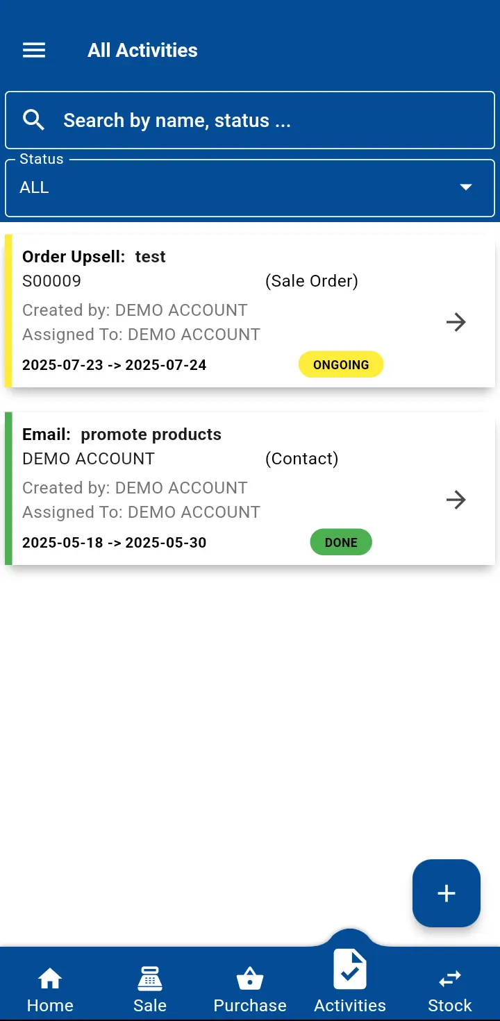 Enter code given for a demo account user to explore features of the app and get to know the solution the mobile application can bring to your business.